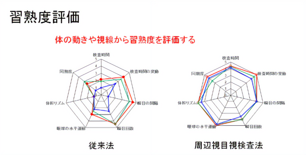 周辺視で作業するように指導・訓練すると 左図のように習熟度が上がっていき、