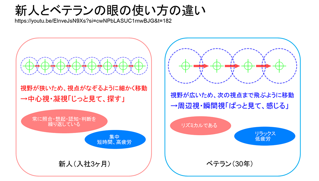 眼の動きと手の動きを合わせて解析すると 「ベテランの作業」を浮き彫りにすることが可能です。